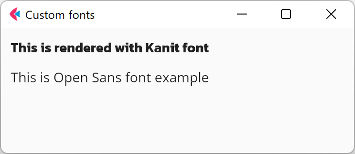 The following program loads "Kanit" font from GitHub and "Open Sans" from the assets. "Kanit" is set as a default app font and "Open Sans" is used for a specific Text control: