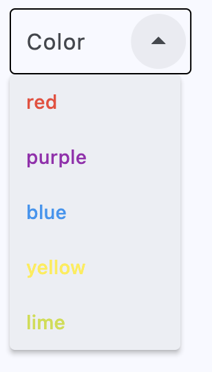 focused_bgcolorBackground color of dropdown in focused state. Will not be visible if filled=False.