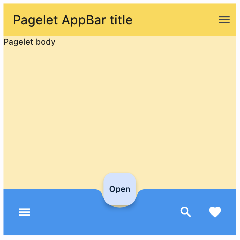 BottomAppBar control to display at the bottom of the Pagelet. If both bottom_appbar and navigation_bar properties are provided, NavigationBar will be displayed.