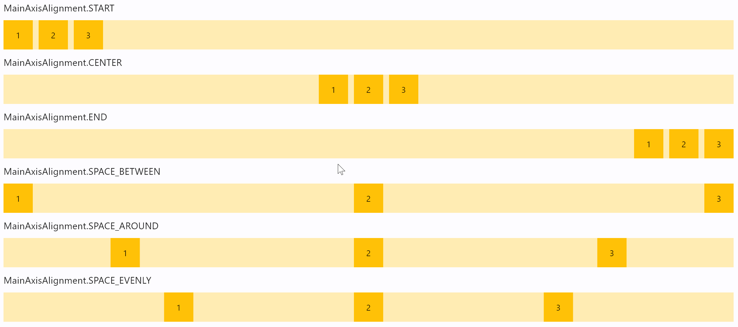 row_with_alignment(ft.MainAxisAlignment.SPACE_BETWEEN),